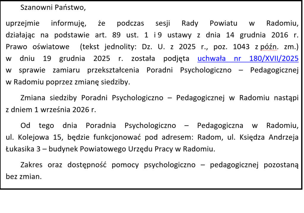 Poradnia Psychologiczno-Pedagogiczna w Radomiu